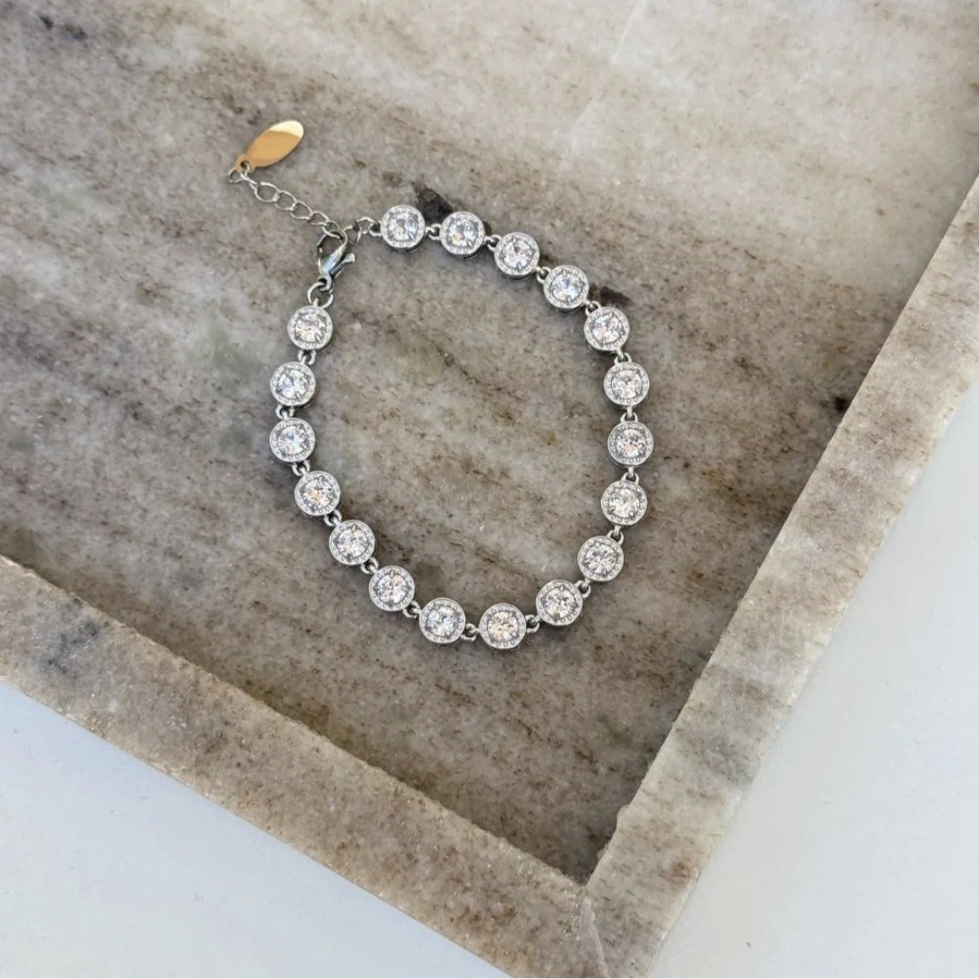 Το Strassea Silver Bracelet είναι ένα εκλεπτυσμένο ατσάλινο ασημένιο βραχιόλι με ζιργκόν σχεδιασμένο για γυναίκες που αγαπούν τη διακριτική λάμψη και την απλότητα.