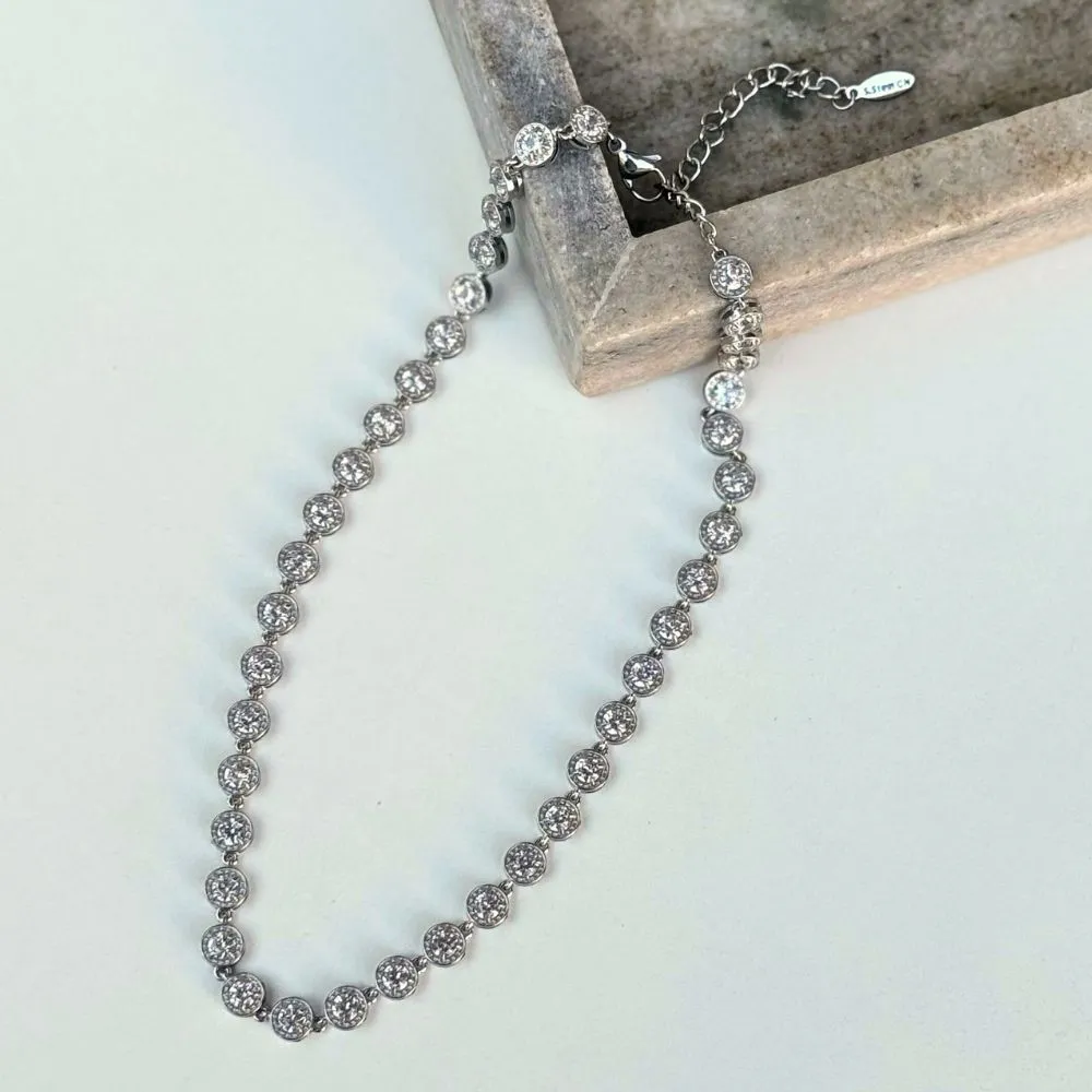 Ατσάλινο Ασημένιο Κολιέ με Ζιργκόν Strassea