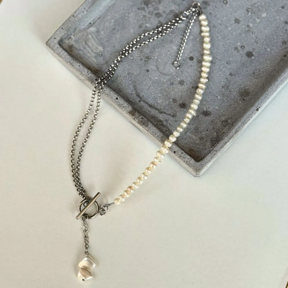 Το Ayla Necklace είναι ένα εντυπωσιακό κολιέ με μαργαριτάρια και ατσάλι, που συνδυάζει την κομψότητα του φυσικού μαργαριταριού με τη μοντέρνα αισθητική του ατσαλιού.