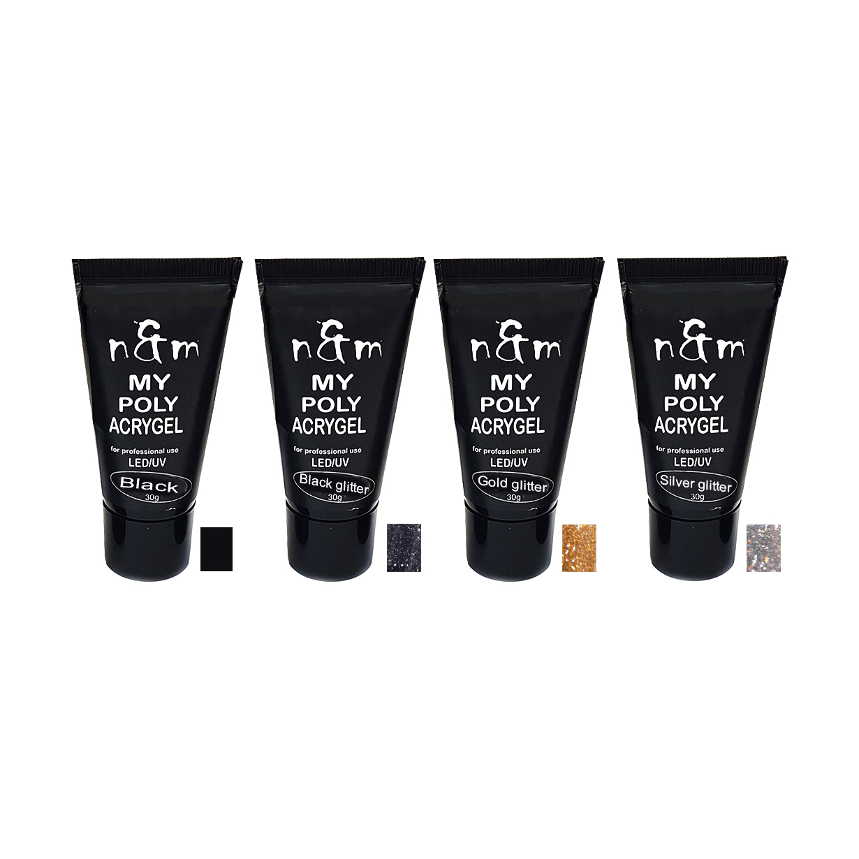 MY POLY-ACRYGEL Black 30ml ,MY POLY-ACRYGEL Black glitter 30ml ,MY POLY-ACRYGEL Gold glitter 30ml ,MY POLY-ACRYGEL Silver glitter 30ml |